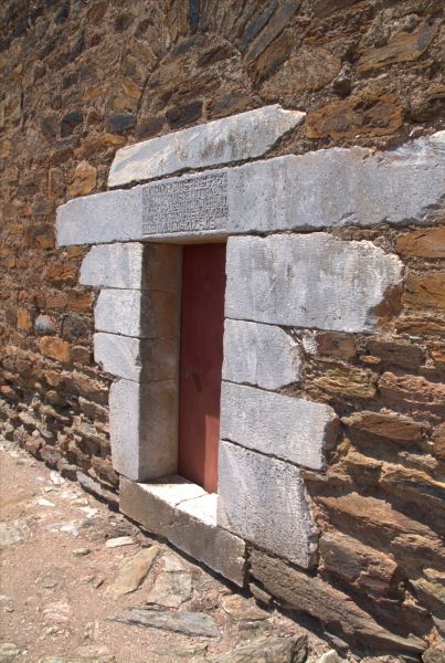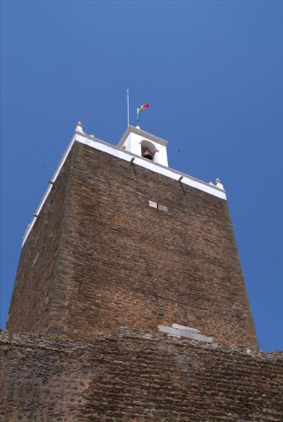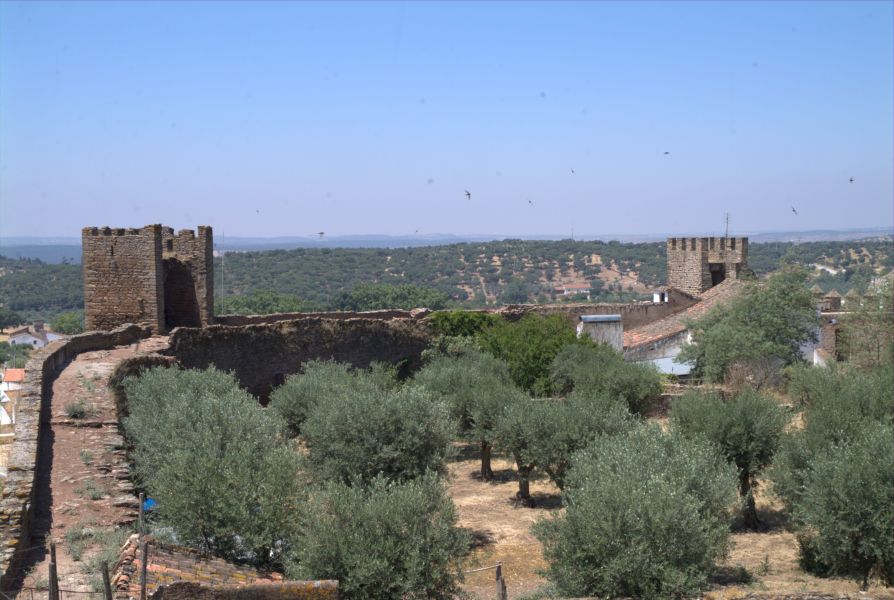 Por ordem de D. Dinis, Lourenço Afonso - 9º mestre da Ordem de S. Bento -, fundou este castelo. As obras terminaram em 1298, demorando apenas 4 anos. Na sua construção foram usados granito, mármore e xisto. A planta é oval, com um topo robustecido por três torres, situando-se a torre de menagem a poente da muralha. Fica no centro da vila do Alandroal, rodeado pelo casario, apresentando-se relativamente bem conservado.