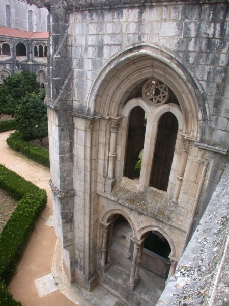 Sem a sorte de ter visita guiada, sigo o grupo até ao Claustro do Silêncio, um dos maiores que os monges desta Ordem edificaram. Procuro o Refeitório. Por influência de manuais de História e por vozes amigas soube que é aqui que se encontra o Púlpito do Leitor. Encaixado numa parede com as suas elegantes colunas era aqui que, durante as refeições, eram lidas passagens da Bíblia. Os mais curiosos espreitam para uma estreita abertura na pedra. Não se sabe ao certo, mas segundo consta terá servido de passagem dos alimentos da vizinha cozinha. Antes de lá ir, depara com o Lavabo renascentista destinado à lavagem das mãos antes das refeições. Revestida a azulejos, a cozinha surpreende pela dimensão da chaminé central e pelo tanque que recebe a água directamente de um braço do rio Alcôa. Uma confirmação da engenharia dos cistercienses quanto às questões hidráulicas. Depois da igreja, o Capítulo era a dependência mais importante para a comunidade. Era aqui que os monges se encontravam para ouvir as leituras e eleger o abade entre outras tomadas de decisões. A partir de finais do século XVI os monges dedicaram-se ao cultivo das Artes e das Letras. O mosteiro conhece assim a época dos “monges barristas” com uma obra escultórica notável seja na pedra, no barro ou na madeira como é exemplo a Morte de São Bernardo patente na igreja ou as estátuas dos reis de Portugal até D. José na Sala dos Reis.