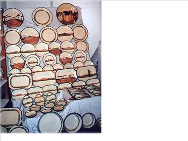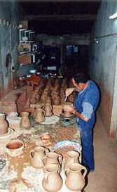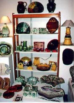 A olaria tem aspecto grosseiro e é adaptada às funções domésticas (alguidares, bilhas, cântaros, fogareiros, vasos, tachos). Algumas das peças são pintadas e vidradas; os desenhos são ingénuos motivos alentejanos em tons de castanho, azul e amarelo. Os fornos de Viana do Alentejo, onde as peças são cozidas, são a lenha, descobertos, sem chaminés, com paredes de alvenaria e cobertos por uma abóbada, onde o oleiro a meio da noite vai espreitar a cor das peças.