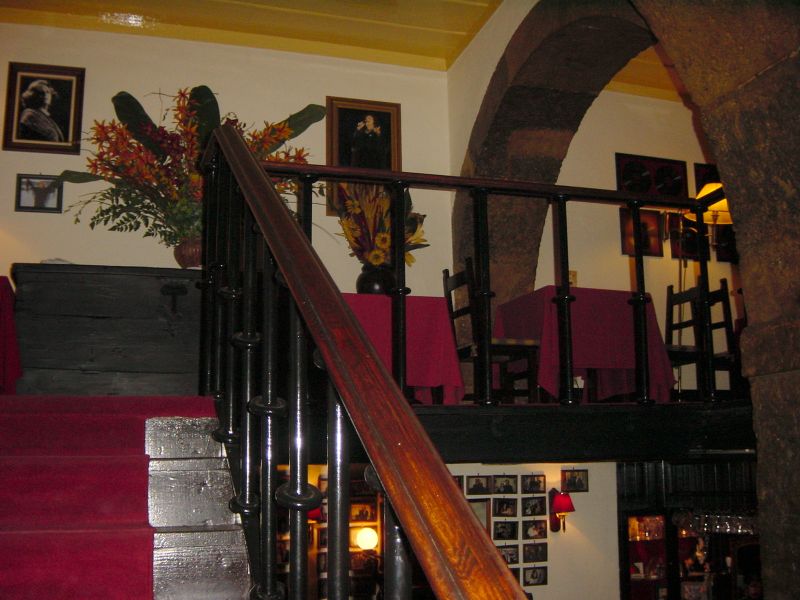 Instalado num edifício de arquitectura tradicional e apresentando uma decoração típica, sóbria e requintada, esta Casa de Fados possui uma magnífica sala de jantar, com tecto ogival, colunas de pedra e até um poço mouro. A ementa oferece excelentes pratos da gastronomia tradicional portuguesa, que se saboreiam enquanto se assiste a espectáculos de fado cantados com alma, tanto por artistas de renome e como por amadores.