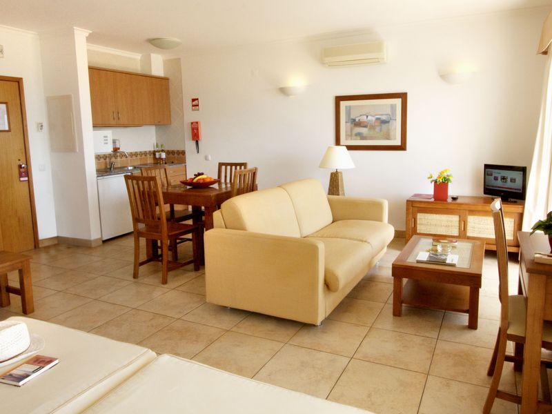 O resort fornece apartamentos desde T0, T1 e apartamentos com quartos twin. Dispõe de uma piscina estrategicamente colocada entre espaços verdes e bem cuidados, um health club, jacuzzi, sauna, piscina coberta de água aquecida e um campo de ténis