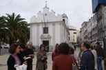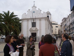 Sábado, 10 horas. O ponto de encontro é no Martim Moniz junto à Igreja da Senhora da Saúde. De pequenas dimensões, este templo do século XVIII é um símbolo da arquitectura barroca e deixou-nos logo de queixo caído na casa de partida. Ao redor da igreja pode ver-se desenhado na calçada a sombra da fachada, uma intervenção feita em 87/88 pelo artista plástico português Eduardo Nery.