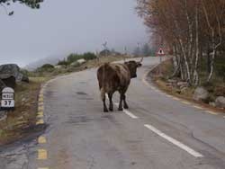 A descer todos os santos ajudam e na serra ainda ajudam mais. Eis que no meio do nevoeiro que não deixa o sol respirar surge sorrateira em plena estrada uma vaca. Carlos Trindade, da Turistrela, quem tem por sorte e missão conduzir o Hummer, esclarece que é comum encontrarmos estes bovinos a lamber o alcatrão atraídos pelo sal colocado nas estradas para derreter a neve.