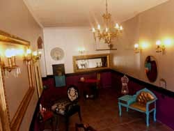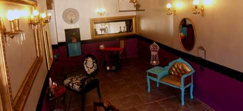 Nada nesta decoração anuncia que está num cabeleireiro. O ambiente retro dá antes a impressão que chegou a casa da avó. Descascado o empedrado de uma abóbada do tecto, única confissão da antiguidade do local – antigas cavalariças do castelo –, o passo seguinte foi a decoração.