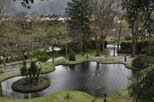Ao lado, uma casa em estilo britânico e um chalé francês (desenhado por um famoso arquitecto parisiense) compõem a silhueta romântica deste local, enquanto mais à frente fica um arrojado edifício de design moderno que acolhe o Centro de Interpretação da Lagoa das Furnas.