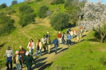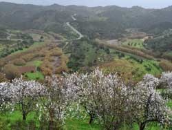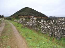Daqui siga pela estrada pavimentada mas pouco depois encontrará sinalização para mais um trilho de terra batida. Muito em breve (próximo do marco geodésico do Cerro da Alta Mora) terá à sua frente um dos mais belos troços do percurso, com a serra verdejante totalmente salpicada pelo branco das amendoeiras em flor. Esta caminhada ainda só agora começou mas dificilmente resistirá a fazer uma primeira pausa mais prolongada para apreciar o cenário em redor.