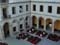 Aqui tudo parece ser geométrico e às curvas das arcadas sobrepõem-se as linhas rectas e escorreitas das janelas, da moderna cobertura transparente que fechou o claustro ou até mesmo da própria disposição do mobiliário.
