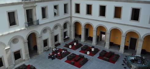 São elas que abençoam a chegada dos visitantes antes de se depararem com um imenso claustro, verdadeiro centro nevrálgico de toda a pousada. Imponente mas sóbrio, é uma espécie de quadrado perfeito que se enche de claridade durante o dia, num jogo de luz e sombras à mercê dos caprichos do Sol.