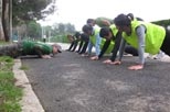 As hostilidades são iniciadas com um aquecimento muito semelhante ao que fazíamos nas aulas de Educação Física do liceu: corridinha simples e depois com diversos movimentos de braços e de pernas, corridinha de lado, tudo bem aquecidinho, se faz favor, que isto hoje vai ser a doer….