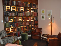 É por isso que o interior do restaurante tem várias referências (mais ou menos subliminares) à obra do escritor, a começar por uma instalação da artista Joana Astolfi (foto ao lado) situada num canto logo à entrada. À primeira vista não parece mais do que uma simples estante de livros antigos, mas se olharmos com atenção conseguimos decifrar a frase “Para ser grande, sê inteiro”. “Não foi por acaso que a escolhi. É um lema escrito por Ricardo Reis que me diz muito” confessa Avillez.