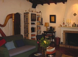 Acompanha os visitantes a música, calma e à escolha. A colecção de cd’s está à vista e responde quanto à selecção musical disponível. Fica-se com pena que a harpa que hoje embeleza a sala só sirva para decoração e não haja um corpo dócil e elegante que com ela produzisse harmonia.